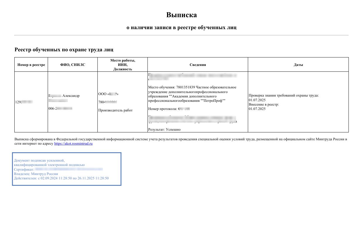 Пройденный курс позволяет специалистам эффективно управлять безопасностью на производстве, снижать риски производственных травм и обеспечивать соответствие нормативным актам.